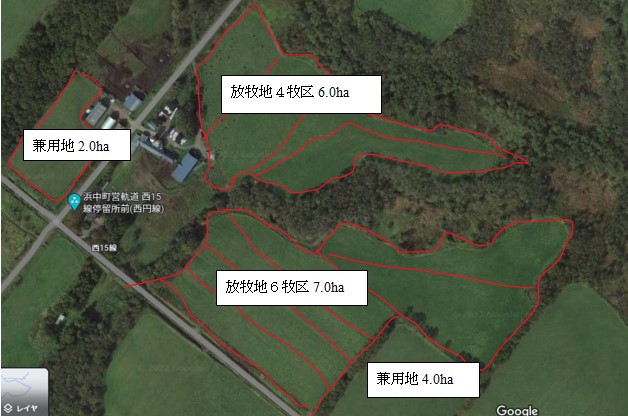兼用地は1番草収穫後の7月以降と2番草収穫後の9月以降に放牧利用します。