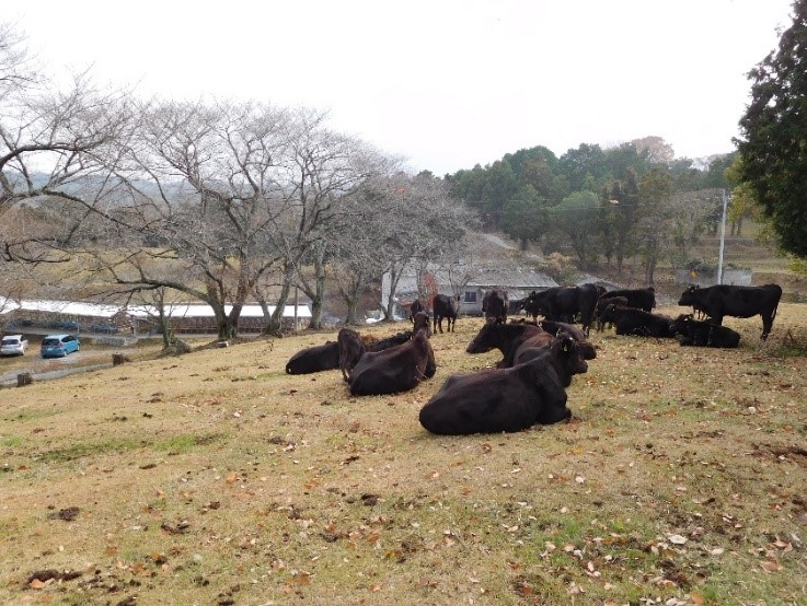 地域は暖地でもあり、周年放牧利用が可能です。このためほとんどの草地を放牧利用としています。また低地の稲作経営から飼料稲栽培も受託しWCS調製して補完することで飼料自給率を高めています。