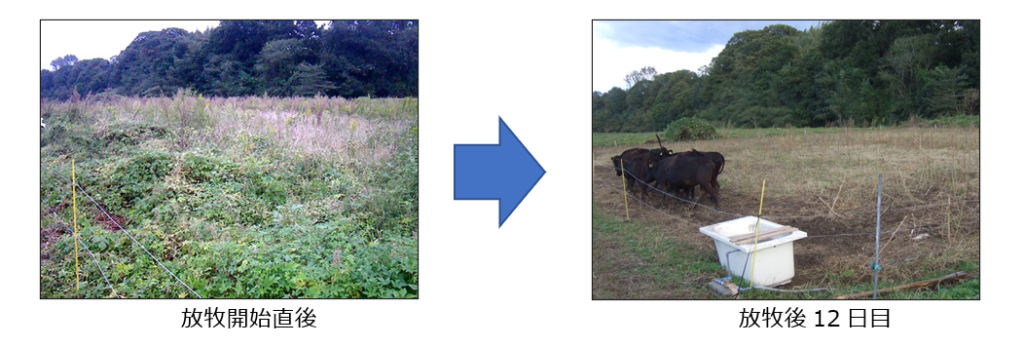 ①耕作放棄地放牧