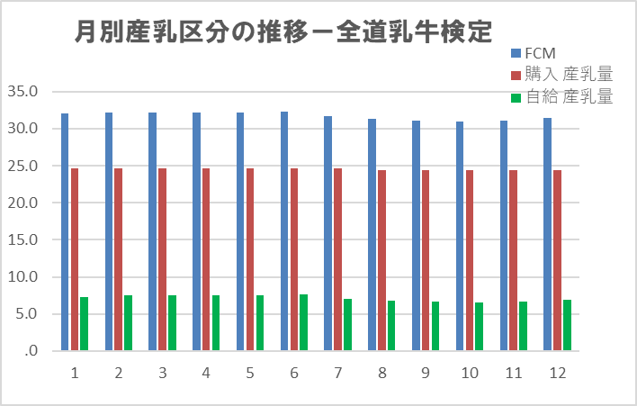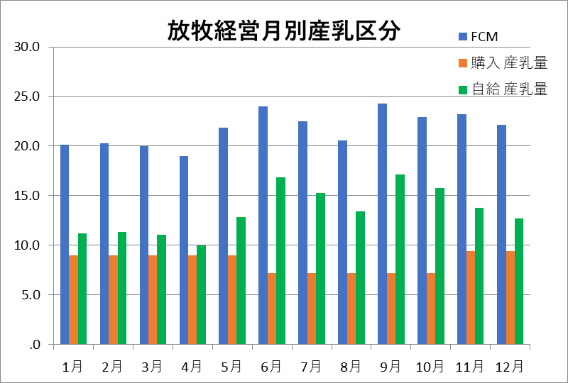 自給飼料由来生産乳量=FCMー購入飼料生産乳量
