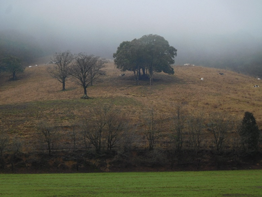 島津牧場はえびの市の山岳地域に位置し、山林地帯を抜けた開けた丘陵地で営農しています。当初は共同経営でしたが、現在は1家族で営農継続しています。以前は雑草のチカラシバが優占していましたが、放牧活用経営への転換に向けてイタリアンライグラス、ペレニアルライグラス、最近はフェストロリウム等を追播により導入して数年かけて放牧地を整備してきました。その結果、現在は牧草主体の放牧地が形成されています。
