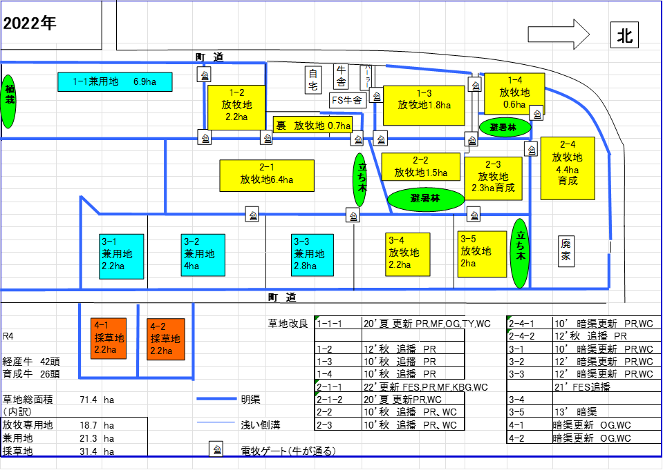 しかし、秋口には中から大牧区に編成した柔軟な利用方式です。昼夜放牧です。