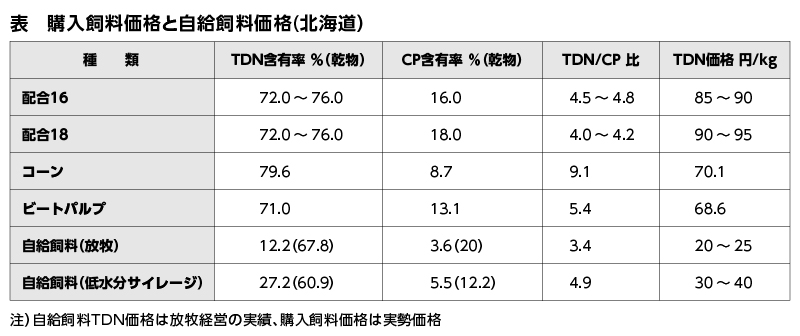 ここで放牧草の生産コストについて少し検討しておきます。通常乳牛に給与されている購入飼料と比較しました。