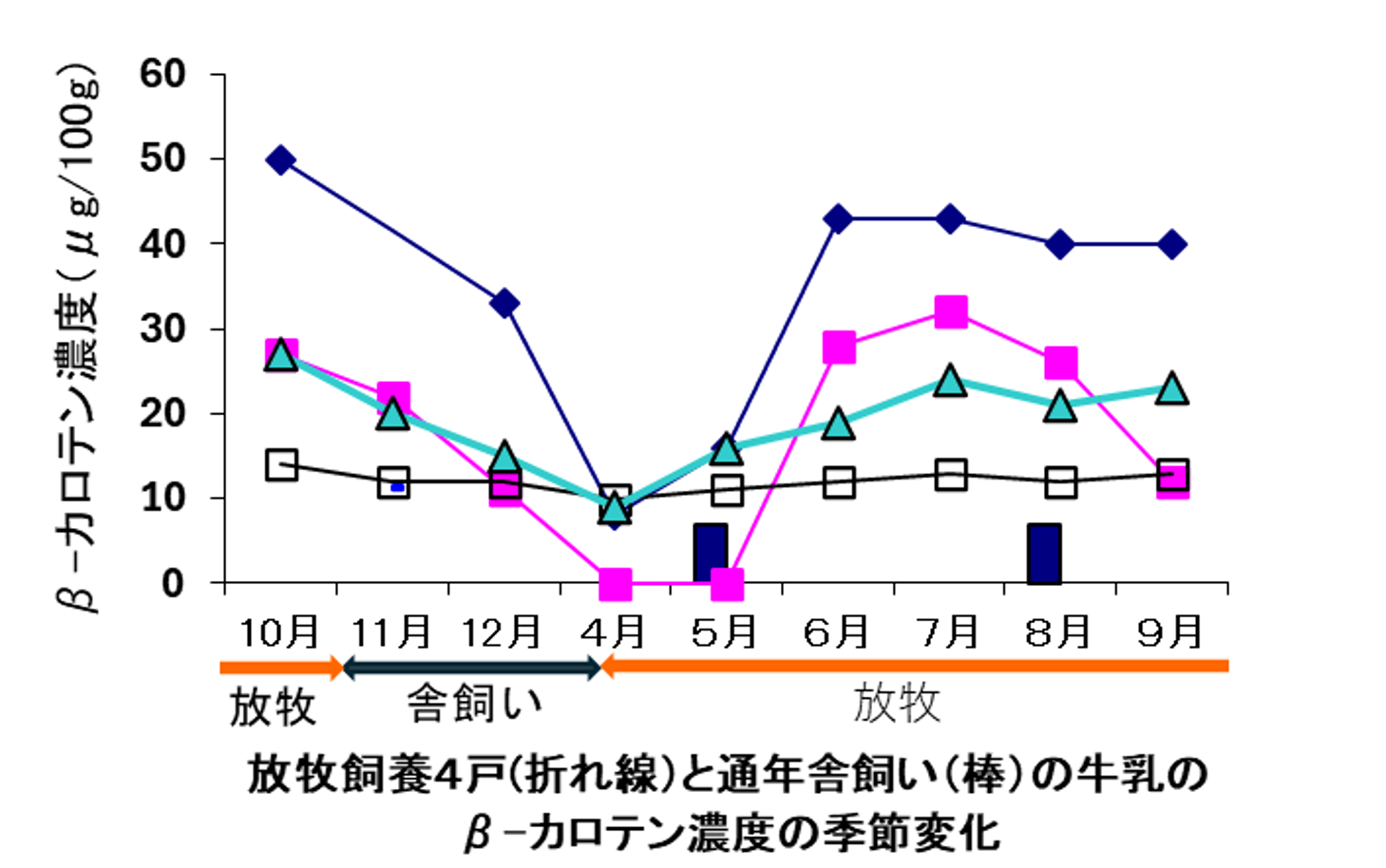 また、牛乳の需要は夏季に多くなりますので放牧生産は牛乳の需給にも合致しているとも言えます。