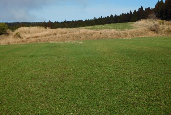 島津牧場はえびの市の山岳地域に位置し、山林地帯を抜けた開けた丘陵地で営農しています。当初は共同経営でしたが、現在は1家族で営農継続しています。以前は雑草のチカラシバが優占していましたが、放牧活用経営への転換に向けてイタリアンライグラス、ペレニアルライグラス、最近はフェストロリウム等を追播により導入して数年かけて放牧地を整備してきました。その結果、現在は牧草主体の放牧地が形成されています。