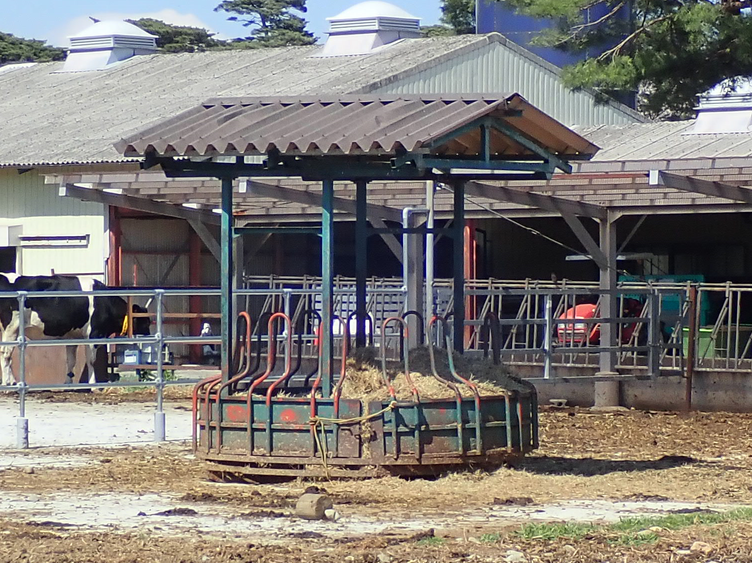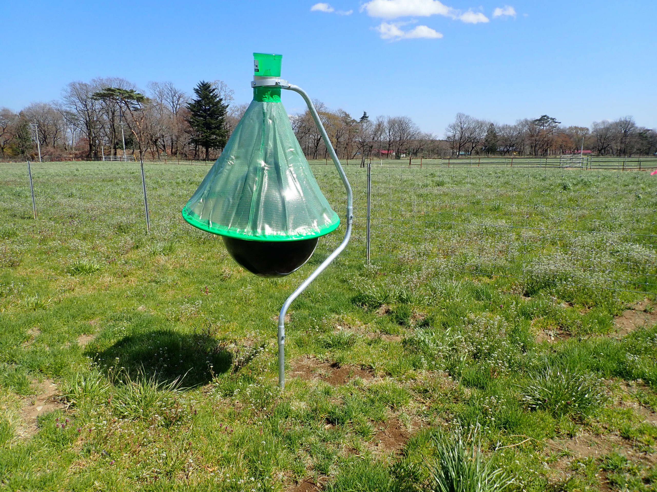 乳牛は暑熱に弱いため、放牧地にひ陰場所を設けます。ひ陰林は立木間隔が1.5~2.5m前後、面積4.5~5.0㎡/頭が標準とされています。ひ陰林は、吸血昆虫や風雨からの回避場所としても使われます。アブによる吸血は病気を媒介するだけでなく、大きなストレスとなり採食量の低下を招きます。アブの被害が大きいときは、アブトラップを設置します。簡易な自作タイプもあります。放牧地やパドックで鉱塩や貯蔵牧草を長期間給与する場合は、雨でぬれないよう工夫します。補助飼料を給与する施設の周りは泥濘化対策をするか簡単に移動できるタイプを検討します。