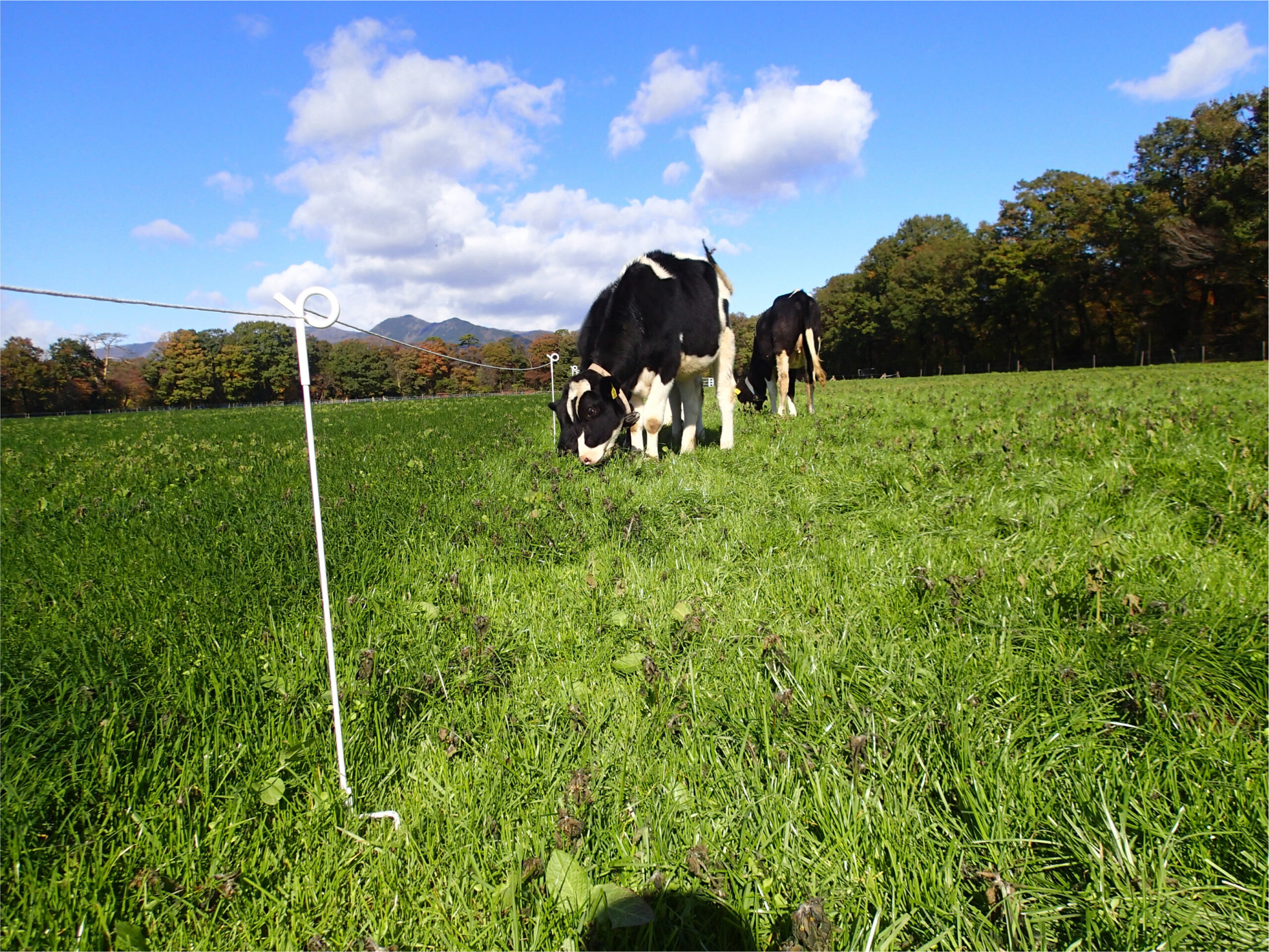 放牧方法は、搾乳ごとに牧区を変え1日2牧区を輪換します。ライジングプレートメーターを用いて、牧区ごとの牧草生産量を把握することで、牧区面積の設定や牧区の入牧順番を決めること等に役立てています。
