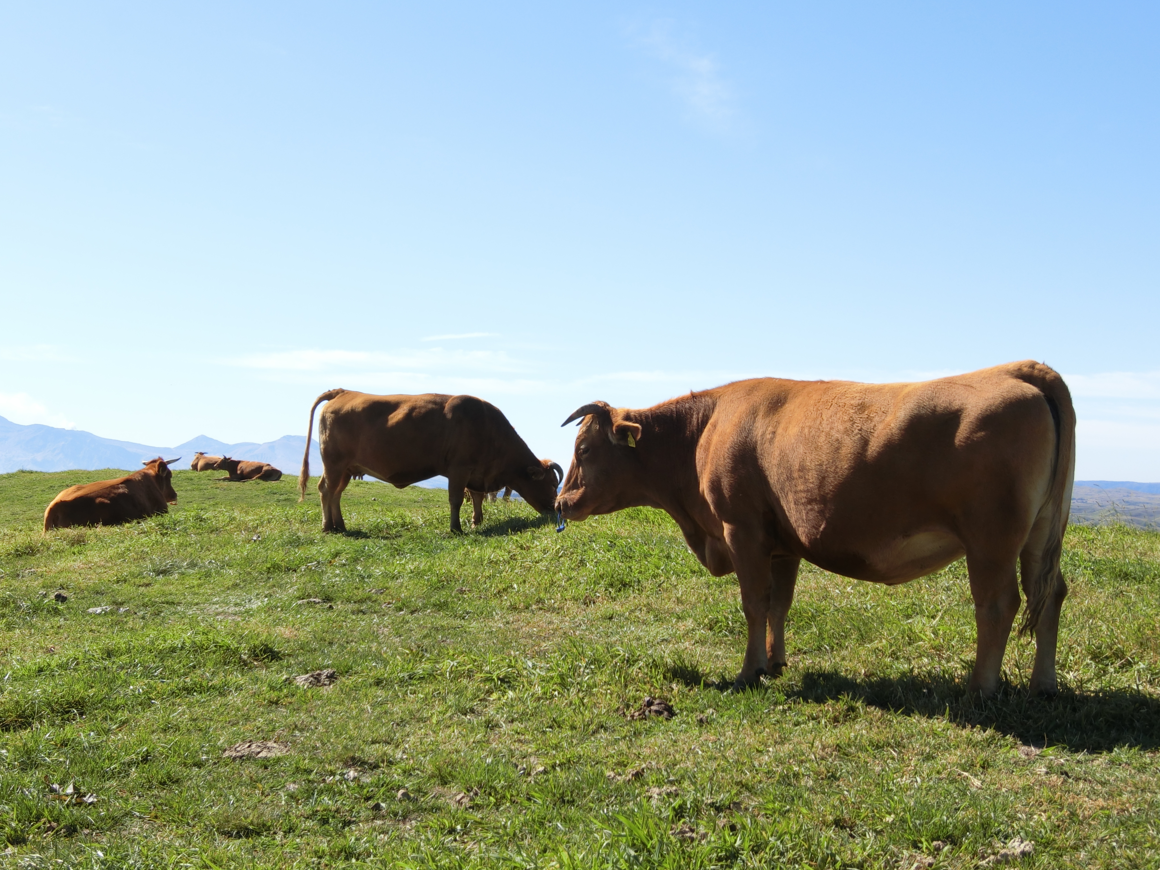 熊本県阿蘇郡産山村の池山牧場は、牧草地、 野草地などを活用した肉用牛の放牧を行って います。 育てているのは「あか牛」。 和牛の一種で正式には褐毛和種 (あかげわしゅあるいはかつもうわしゅ)といいます。 池山牧場では繁殖牛24頭・育成牛2頭・肥育牛30頭 の飼養管理を行なっています。 そのうち繁殖牛24頭を放牧しています。 産山村は、阿蘇北外輪山と九重山麓が交わる 波状高原と急傾斜部分からなる高原型の農村で、 村の8割以上を山林と原野が占めています。 牧場主は井博明さん。 阿蘇の草原であか牛を育てて50年になります。 「牛は草で育てる」この地域では昔から放牧畜産 に対する確固たる理念が根付いています。 現在、牧場経営は娘婿の俊介さんが受け継いで います。 粗飼料の割合を35%まで増やして育てる 「粗飼料多給型肥育」を実践しています。 また、名水百選の池山水源の水も与え、 牛の健康を第一に育てています。 井さんは、築100年の古民家で民宿を経営し、 その一角で農家レストラン「山の里」の営業も 行なっています。 新鮮で肉厚なあか牛のステーキが評判。 店内はいつも大盛況です。 広大な阿蘇の草原で、すくすくと育てたあか牛。 その肉は消費者に自信をもって届けることが できます。 そしてまた、放牧によってこの阿蘇の大自然が これから先、未来に向かって守られていくのです。
