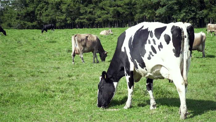 放牧畜産基準認証第1号の牧場で「土作り草作りから生まれる健康的で低コスト生産ができる放牧酪農」をモットーに、地域の気候や土壌に適合し、将来にわたって持続可能な酪農を追求しています。就農した当初は、高泌乳をめざして濃厚飼料を多給していたが、乳牛の疾病が増え乳飼比が高くなって自給飼料基盤を生かせていないことを痛感したことから、ニュージーランドの効率的な放牧を学び、放牧酪農に転換して、牛と人に心地よい牧場づくり、健康的でおいしい牛乳生産を目指しています。草の生育速度は季節によって変化するため、牧区数を変えたり、自給乾草を補充したり、草の生育に応じた放牧地管理を行っていて、牛の放牧により年々草の収量・品質が良くなっていることから、分析に基づいた施肥管理をしていれば放牧地では更新の必要はないと感じています。現在、60haの草地にブラウンスイスなど乳牛約100頭を飼養し、アイスやスウィーツを製造販売する地元企業に生乳を提供し、委託製造した自社ブランドアイスの販売も行っています。