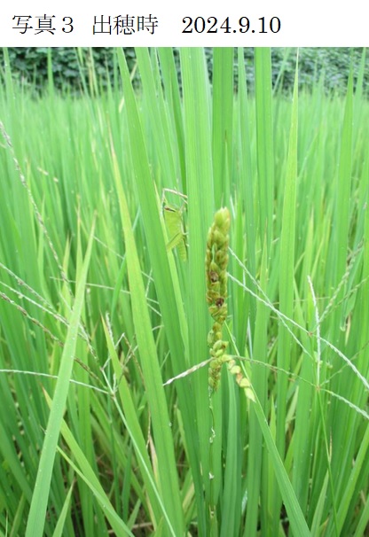 | 栽培概況 気象・生育・展示 | ・地域の飼料増産のために新品種の導入の可能性を検討する。初期の生育は順調であったが、今年は7月下旬から8月中旬の降水量が少なく渇水ぎみでの管理となり、生育の遅れがみられた。病害虫の発生による被害は無く、また倒伏も無かった。生草収量は、昨年のつきことかの反収(7,400kg/10a)より少なかったが、慣行品種の一般的な収量と比較して多かった。調査時の草丈は平均135.4㎝であり、昨年(173㎝)よりも低かった。平均分げつ数は13.2本。栄養成分については、粗タンパク質が5.3%、TDNが63%となっており、日本標準飼料成分表の値よりも、やや粗タンパク質の値が低い結果となった。今年は9月10日前後が出穂期であったが、晩生の品種であり、収穫時期が主食用の水稲と重なり、収穫作業が集中することが課題である。 |