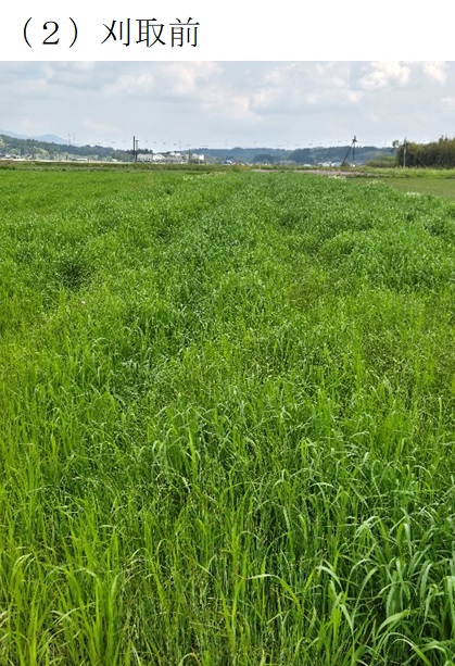 | 栽培概況 気象・生育・展示 | ・新品種を導入し地域の飼料増産につなげる。天候の影響により前作のWCS用稲の刈取りが遅れ、イタリアンライグラスの播種が例年より遅れた。発芽は良好であった。12月~2月の低温や日照不足の影響により生育は例年より遅れ、3月以降になってから生育が進んだ。生育及び分げつはやや不良で、出穂は4月20日頃で予定より遅くなった。収量調査時の平均草丈は116.2㎝、乾物収量は627kg/10aであった。 |
