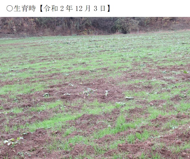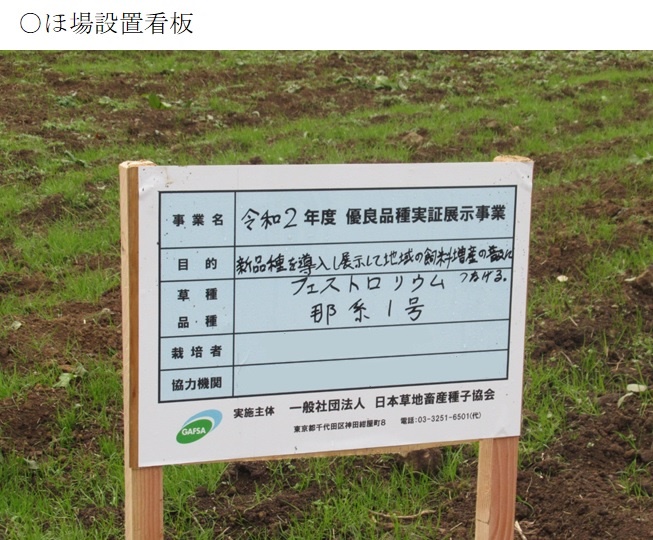 | 栽培概況 気象・生育・展示 | ・新品種を導入し展示して地域の飼料増産の普及につなげるため、栽培展示した。播種一か月後の初期生育は良好で,被度も良好であった。乾物収量においては,乾物率が低めで334kg/10a程度の収量となった。収量調査時の生育ステージは写真では未出穂。また、同条件で隣接ほ場で栽培した「東北1号」より1割程度、低い収量となった。ほ場設置者の意見:フェストロリウムは初期生育も良く,収量も良好であったので,今後は放牧用として活用する。 |