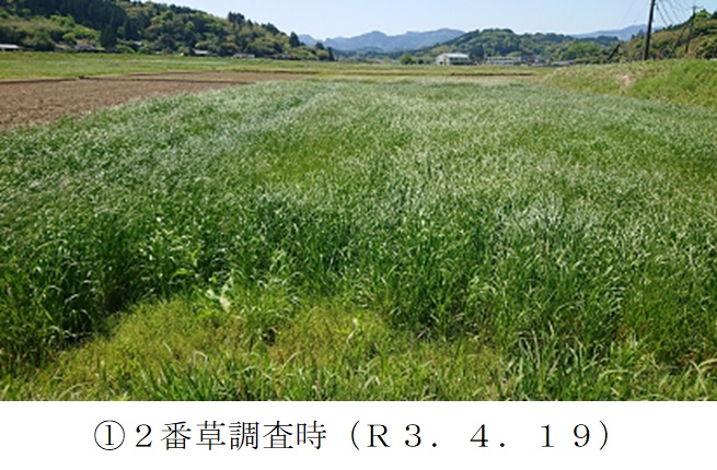 | 栽培概況 気象・生育・展示 | ・新品種の導入と展示により、地域の飼料増産につなげる。播種後の初期生育は順調であり、病虫害の発生も見られなかった。1番草収穫後の再生草の生育は順調であり、病害虫の発生も見られなかった。2番草は、4月中に出穂期まで生育し、従来品種と比べて収穫時期を早めることができる。そのため、収穫時期の分散化が可能となり、自給粗飼料を確保したい農家において、有望であると考えられる。 |