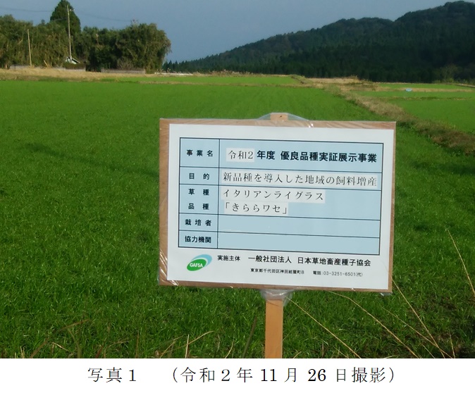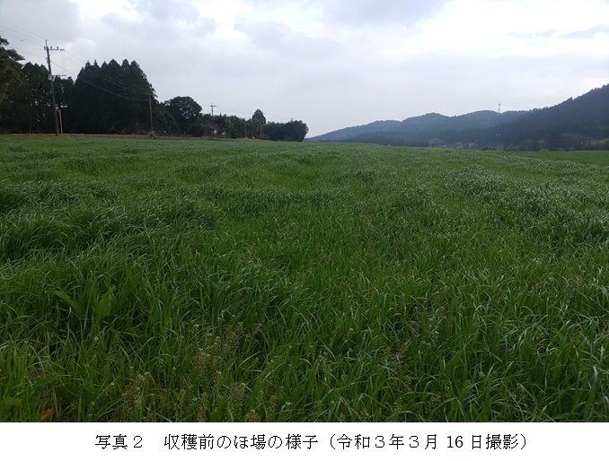 | 栽培概況 気象・生育・展示 | ・肝属地域において高温耐性といもち病抵抗性に優れた品種と判断したことから,地域適応性を確認するために栽培展示する。夏作(前作)の刈り遅れもあり,予定した播種時期が1ヶ月程遅れたが,初期発育は天候にも恵まれ良好。また,成育中の病害虫の発生も特になし。当該地域において,安定した収量確保が期待できる。 |