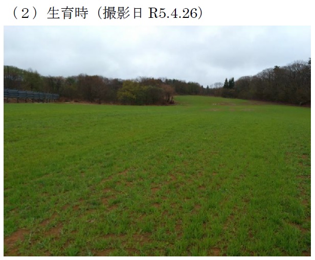 | 栽培概況 気象・生育・展示 | ・新品種を導入し展示して地域の飼料増産につなげる。排水が悪い一部では生育の遅れが見られたが、圃場全体として生育は良好。雑草の侵入や病害虫の発生は見られなかった。当地域は積雪が多く気温が低い地域であるが、冬枯れは見られなかった。このため、当地域でも十分に栽培可能であることが明らかとなり、今後利用が期待できる。 ※この展示ほ場に用いた種子は農研機構より提供されたものです。 |
