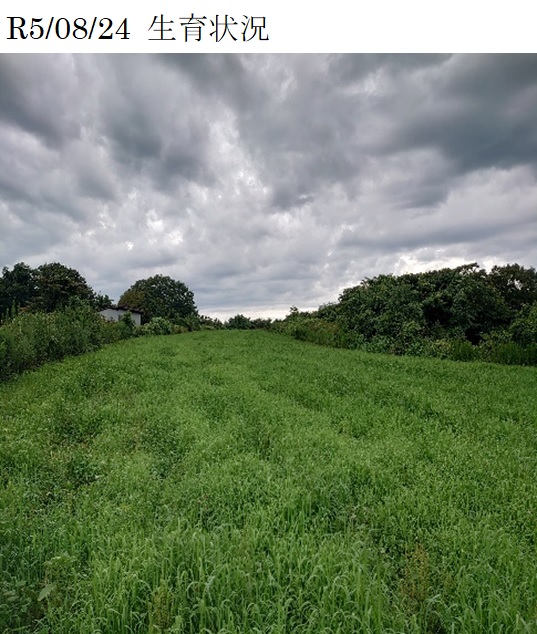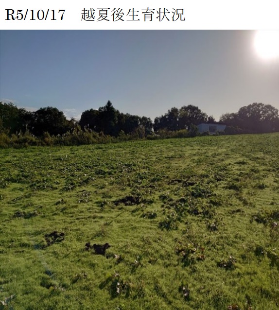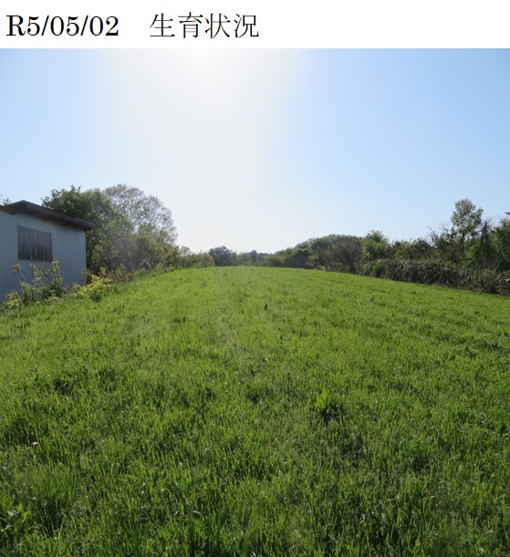 | 栽培概況 気象・生育・展示 | ・新品種を導入し展示して地域の飼料増産の普及につなげる。令和4年10月6日:播種。令和5年3月16日:根雪が深かったことや、その後の水がなかなかはけなかったことが原因の可能性もあるが、いずれの展示ほも立ち上がりが不良。5月2日:草地全体でオーチャードグラスを確認した。5月20日:刈り取りを実施。10月17日:雑草が強勢になっていたが、オーチャードグラスを確認することが出来た。 ※この展示ほ場に用いた種子は農研機構より提供されたものです。 |