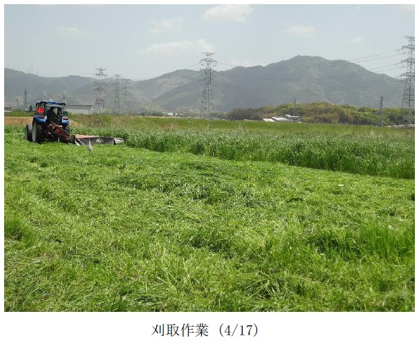 | 栽培概況 気象・生育・展示 | ・収量が高く倒伏に強い品種を導入・展示し、地域の飼料増産につなげることを目的に栽培展示した。同時期に播種した他品種と比べ、発芽が遅く初期生育が遅れていたため、当初は雑草の勢いに押されていた。伸長後、生育が良い場所は雑草が目立たず、また、雑草が伸びていてもきららワセが優勢であった。生育状態の良い場所と悪い場所が発生し、草丈で最大70㎝程度の差が生じた。病害虫の発生はほぼ見られなかったが、一部で中程度の倒伏が見られた。刈取後の予乾について、茎がやや太く、乾きにくいと感じた。きららワセの優位点は雑草抑制などに限られ、収量も期待した程は得られなかった。ただし、例年より播種が遅れたことによる影響も考えられることから、今後の使用や普及性については、検討の余地を残す結果となった。 |