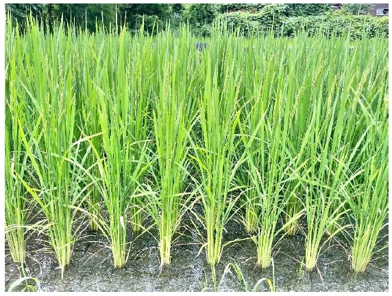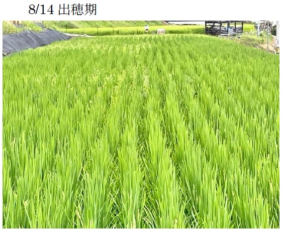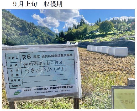 | 栽培概況 気象・生育・展示 | ・地域において早生で単収に優れた品種と判断し栽培展示した。初期生育:早生の特性から初期生育は順調であった。出穂は8月14日頃で、晩生「つきすずか」より、出穂に向けて草丈、茎数(分げつ)とも緩やかになった。病害虫発生状況:部分的にヒエ等の雑草が発生した。生育期間中に気づいた点:主食用品種より草丈が長くなった割に倒伏は無かったので、耐倒伏性はあると思われた。なお、増収を見込んで基肥を増加させた場合に倒伏するか確認する必要がある。収量性等:収量は少なかった。これは茎数が少なかったことも一因と考えられる。今後の使用の可能性や普及性:晩生品種「つきすずか」より収量性は低いものの、早晩性に開きがあるため収穫作業の分散につなげられる。 |