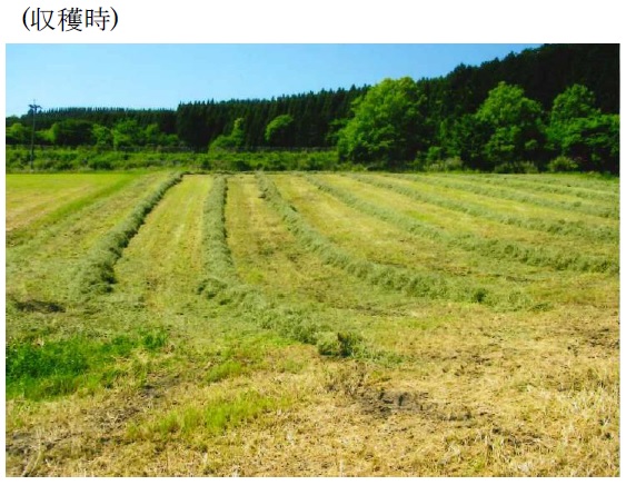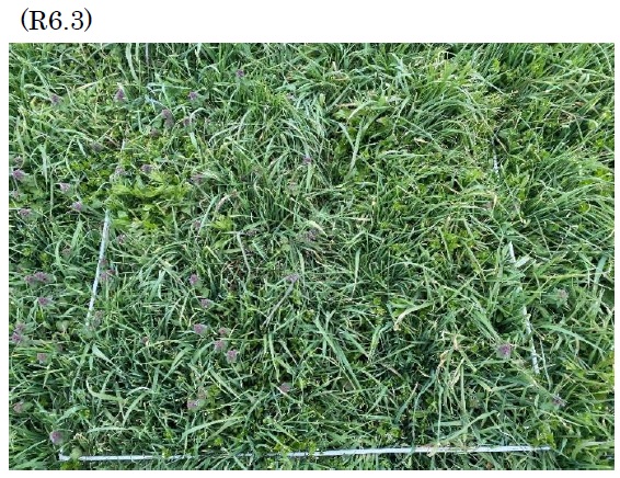 | 栽培概況 気象・生育・展示 | ・新品種を導入し展示して地域の飼料増産の普及につなげる。新たな栽培体系(組合せ)を取り入れて地域の飼料増産の普及につなげる。獣害対策に新たな作物の栽培を試みる。発芽、生育については問題なく、病害虫の発生も見られなかったが、広葉雑草(ヨモギ等)が目立った。除草剤等の対策を早めに行い、雑草が少ない状況下での収量性を調査したいと感じた。 ※ この展示ほ場に用いた種子は農研機構より提供されたものです。 |