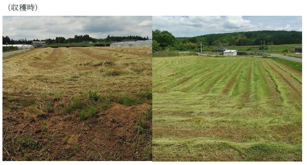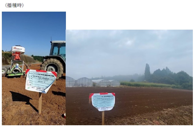 | 栽培概況 気象・生育・展示 | ・新品種を導入し展示して地域の飼料増産の普及につなげる。新たな栽培体系(組合せ)を取り入れて地域の飼料増産の普及につなげる。獣害対策に新たな作物の栽培を試みる。堆肥が少なかったため、発芽、生育状況ともに悪かった。病害虫の発生は見られなかった。播種前に良い土壌環境を整えた上で、生育、収量性を調査したいと感じた。 |