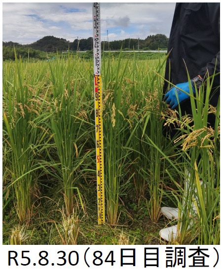 | 栽培概況 気象・生育・展示 | ・新品種を展示し地域の飼料増産の普及につなげる。初期生育は良好な生育を示した。30×30(㎝)(畝幅×株間)の密度での栽培であったが良好な収量を得られた。病害虫や倒伏は見られなかった。本年度の実証結果が良好であったため、来年度も継続して作付け予定である。種子単価が高いため自家増殖を検討している。 |
